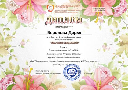 Итоги Всероссийского детского творческого конкурса "Любимая мама"