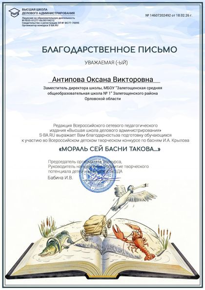 Итоги Всероссийской познавательной онлайн - викторины "В мире басен Крылова"